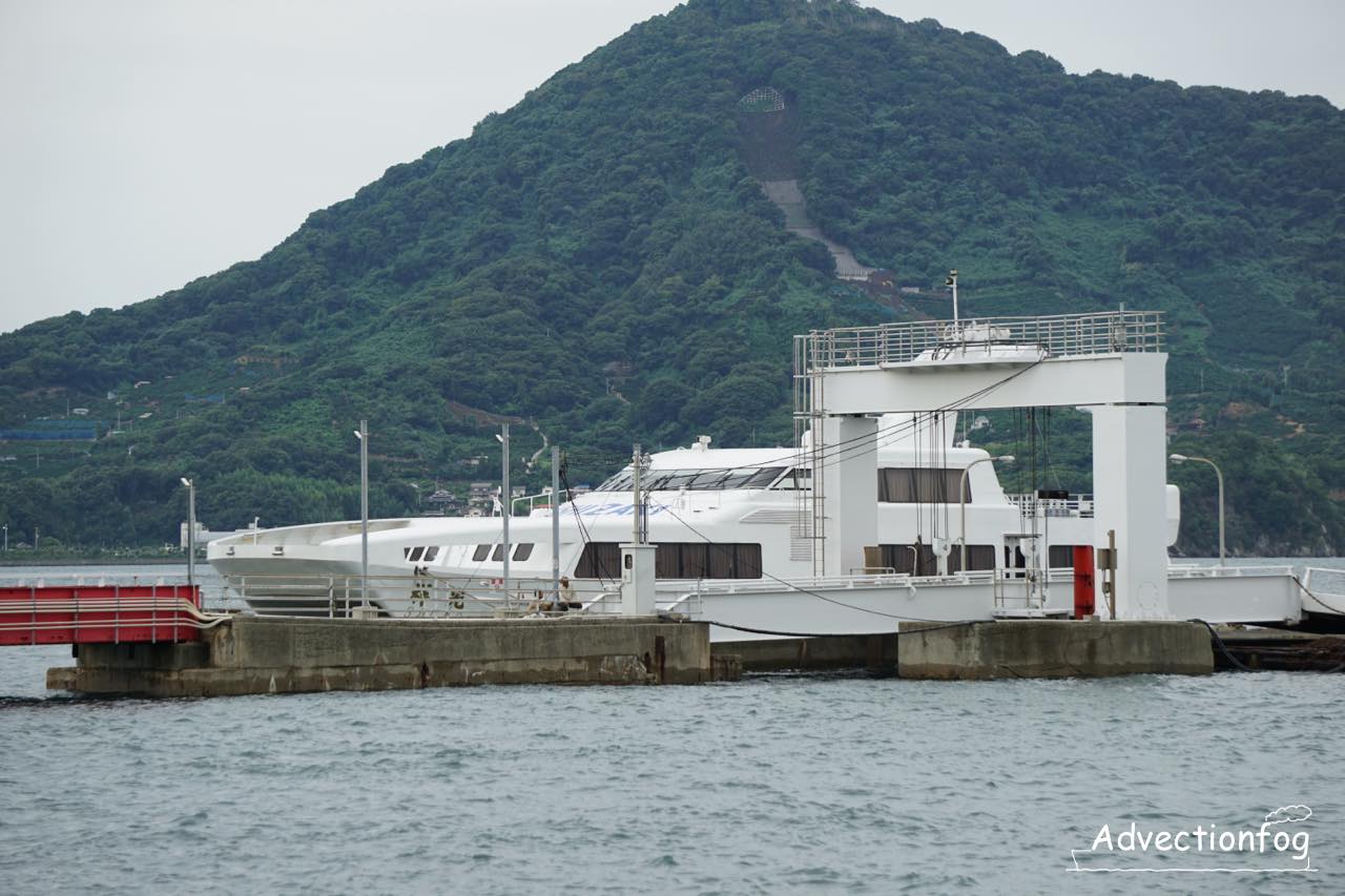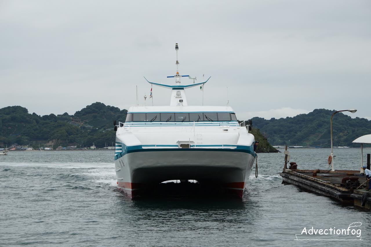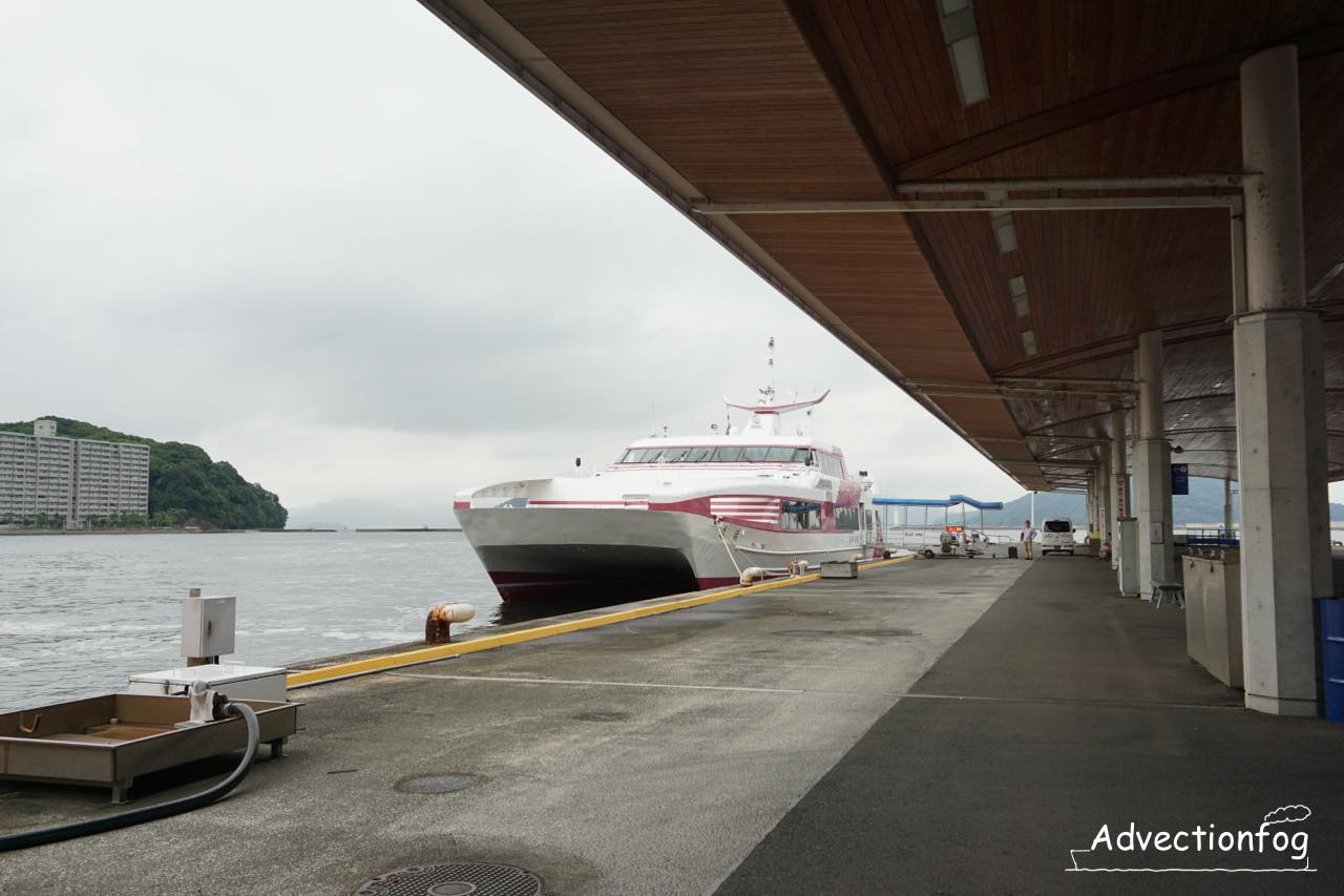 高速船のスーパージェットは毎時1便の高頻度運航でしたが、近年は便数を減らし2025年9月現在1日9便です。日中は2時間に1本ぐらいです。新しい高速船が就航する2025年11月以降は、1日8便に減る予定になっています。