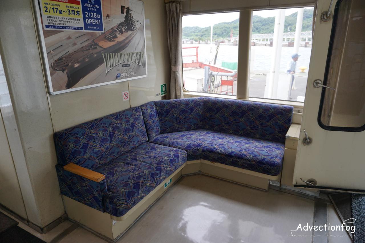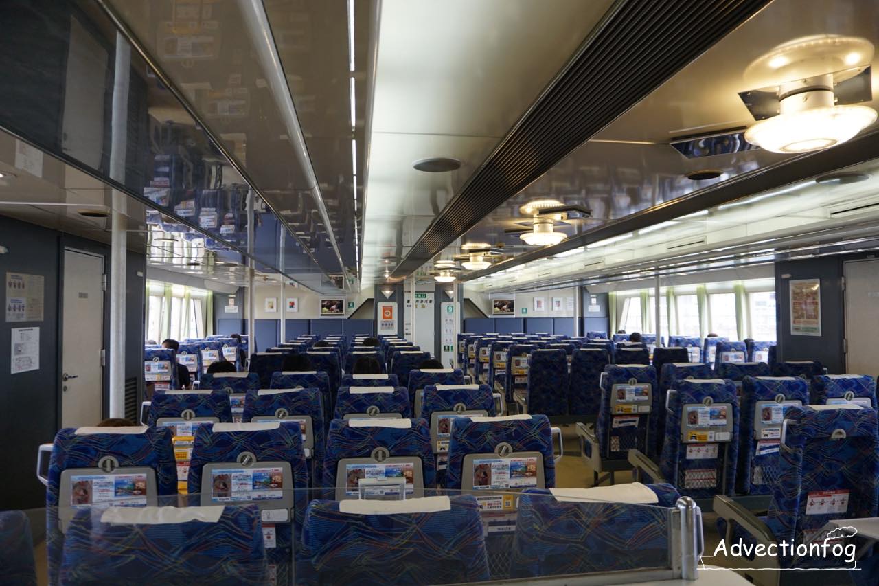 写真は1階席です。この日の便は、窓際の座席が1人か2人で埋まり、少しだけ中央の座席に座っている程度で、まばらな乗船率。以前よりは減っている印象を受けました。